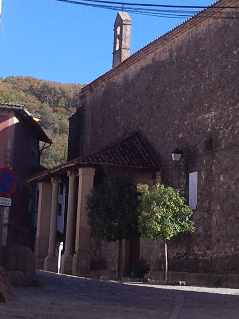 Debió ser construida durante la primera mitad del siglo XVI, lo más a finales del s. XV, presumiblemente sobre una vieja ermita. La saccristía, la fachada occidental y la capilla de la epístola fueron añadidas en el siglo XVII. La modesta arquitectura de esta Iglesia se ve realzada en su interior por el Retablo Mayor (llamado de cascarón) y otros dos laterales, de estilo barroco del siglo XVIII, al que pertenece también el Órgano (hoy restaurado). Guarda la sacristía una importante colección de ropas litúrgicas salidas probablemente de los talleres del Monasterio de Guadalupe. El suelo es de losas de granito numerado, servía de enterramiento, según la vieja costumbre. En el esterior la Plaza recibe también el nombre de Plaza del Cementerio. Cabe destacar también la imagen del Cristo de los Perdones, de madera policromada de la segunda mitad del siglo XIV. Transición del románico al Gótico. Está situado sobre una hornacina con pinturas que representan a Jerusalén con motivos de la Pasión.